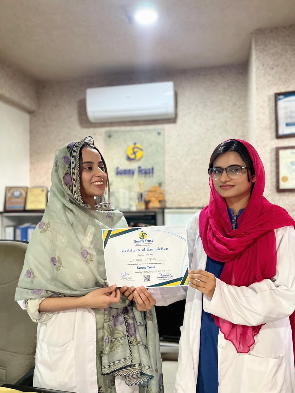 Sunny Trust is presenting completion certificates to the talented interns from Quaid-e-Azam University for successfully completing their one-month internship program. Wishing them continued success in their academic and professional paths.